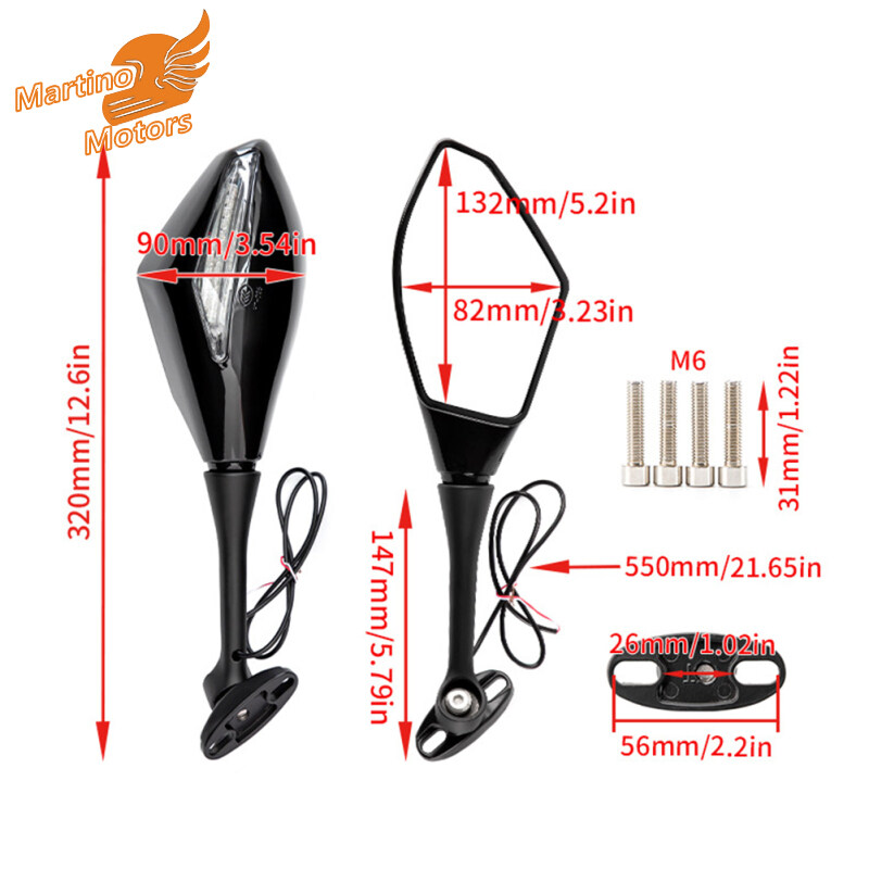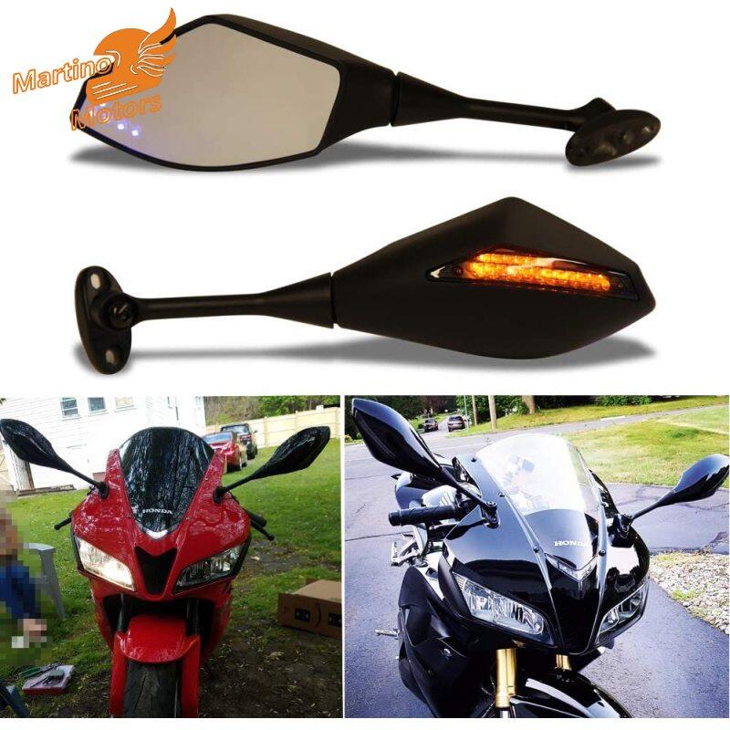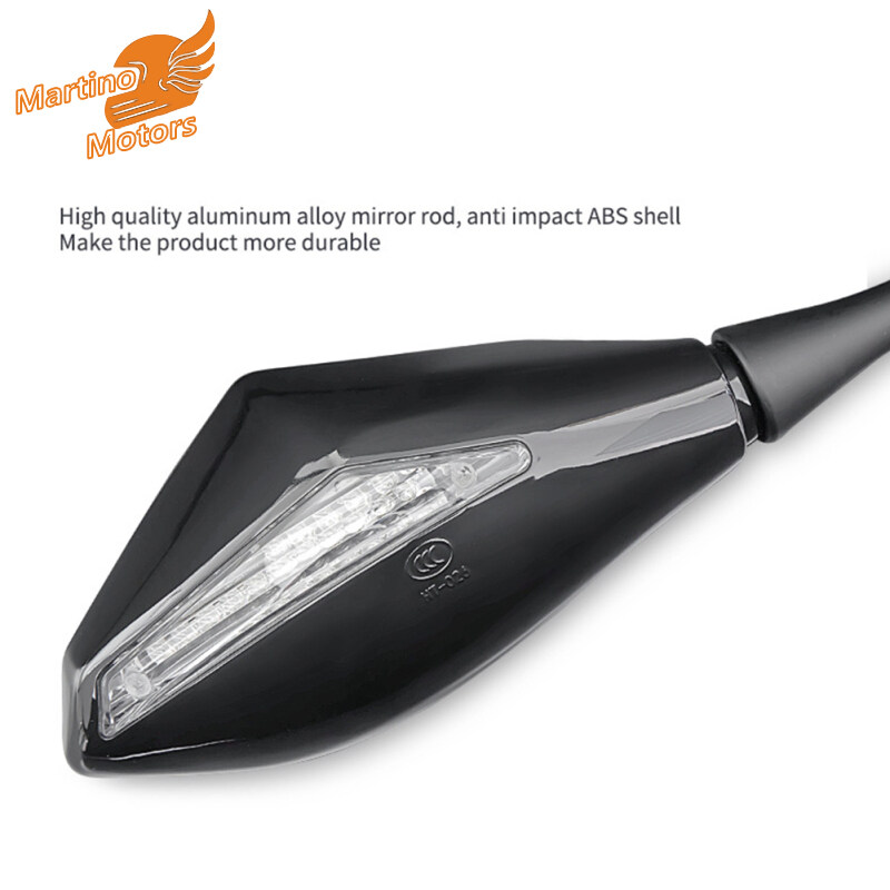 1对摩托车后视镜,带高亮度Led转向信号镜改装配件