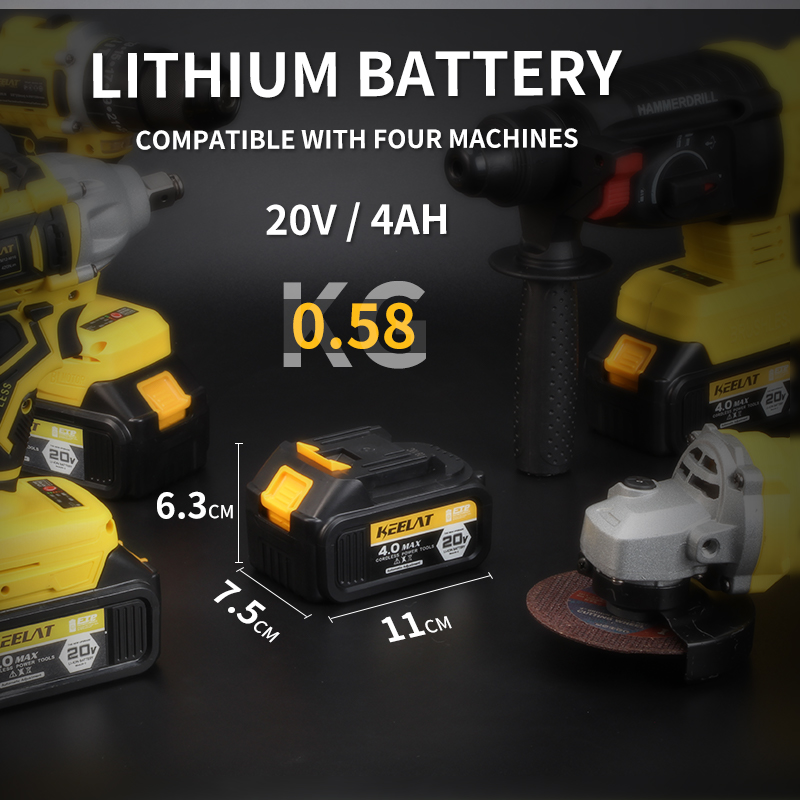KEELAT四合一无刷无绳冲击扳手冲击钻旋转锤钻角磨机同电池一箱工具套装,带20V 4.0Ah锂离子电池